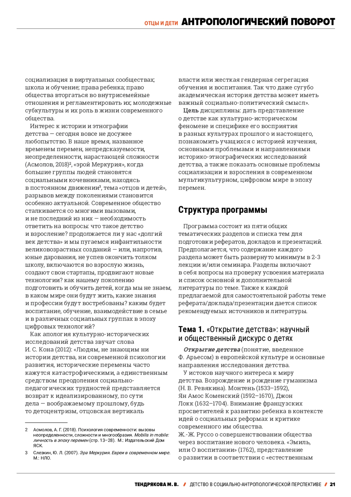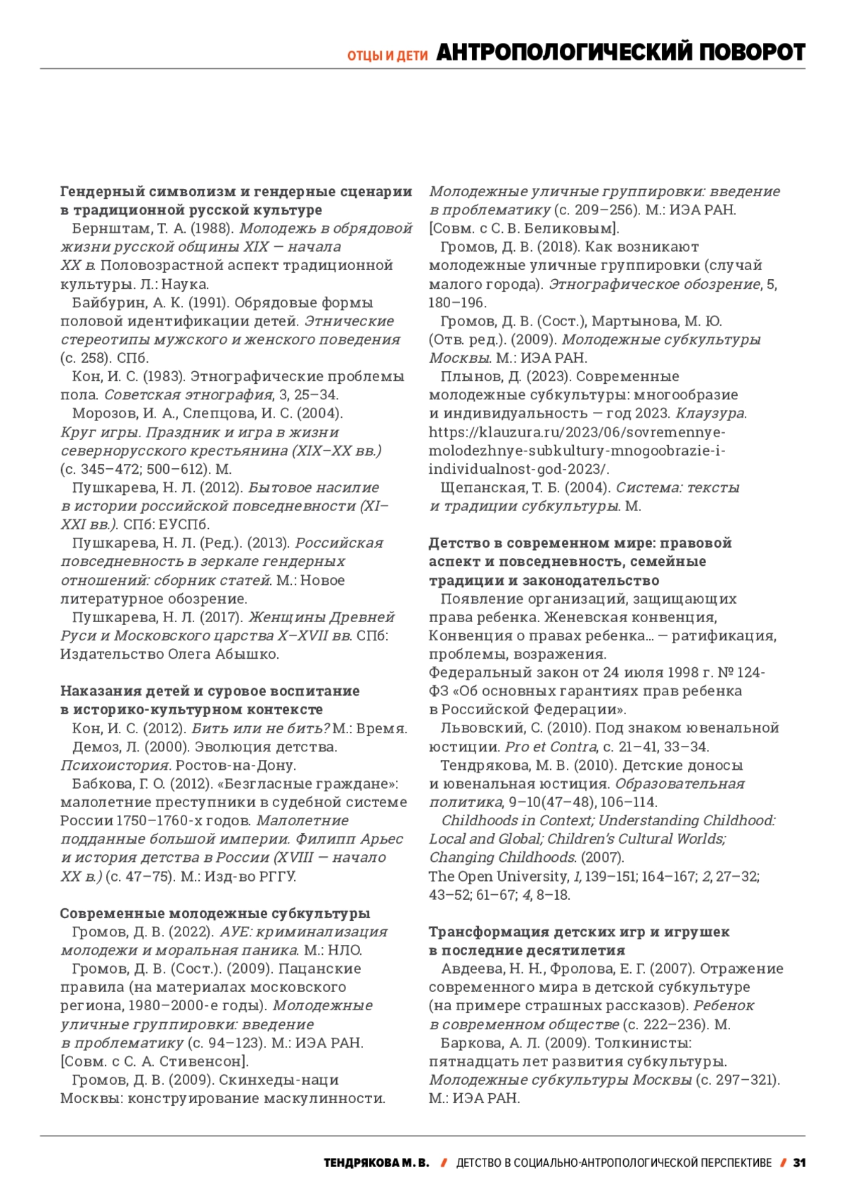 6. Тендрякова, М. В. (2022). Антропология детства. Прошлое о современности. СПб.: Образовательные проекты.