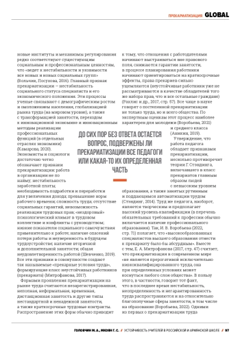 4. Анисимов, Р. И. (2019). Парадоксы труда и особенности прекаризации работников образования. Судьбы российской интеллигенции: прошлое, настоящее, будущее, 297-303. М.: РГГУ. EDN: PGEXZI