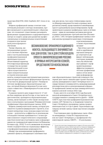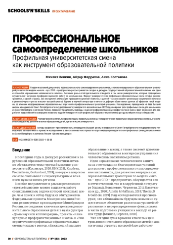 Создание условий для раннего профессионального самоопределения школьников, а также непрерывности образовательных траекторий учащихся по модели «школа - вуз / СПО - предприятие» рассматривается сегодня в дискурсе государственной образовательной политики как один из способов наращивания человеческого капитала. Значимая роль в этой деятельности отводится в том числе университетам, которые традиционно осуществляют активную профориентационную работу со школьниками. Формат университетских профильных образовательных смен сегодня рассматривается, с одной стороны, как инструмент реализации профориентационной повестки, с другой - как инструмент реализации социальной политики в регионе (через «третью миссию» высшей школы). Однако в научной литературе отмечается дефицит объективных данных об эффектах такой модели, ее влиянии на формирование образовательных стратегий и профессиональных траекторий учащихся. Исследование, проведенное на базе Высшей школы менеджмента Санкт-Петербургского государственного университета весной-осенью 2022 года во время трех профильных смен для школьников из Санкт-Петербурга и регионов России, позволяет предложить подходы к оценке профориентационных эффектов таких смен и дает основания для разработки предложений по совершенствованию модели университетской профильной образовательной смены для дальнейшего масштабирования.
