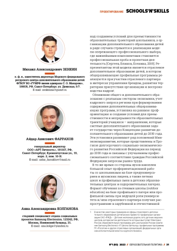 3. Зенкин М. А., Павлов А. В. (2022). Воспитательные эффекты и результаты профориентационной деятельности в дополнительном образовании детей. Профессиональное образование и рынок труда, 10(3), 116-132. EDN: ECMCJY