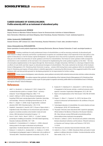 2. Блинов В. И., Сергеев И. С. (2020). Веер возможностей: профессиональное образование 2020-2035. Образовательная политика, 1(81), 76-86. EDN: HLPRTB