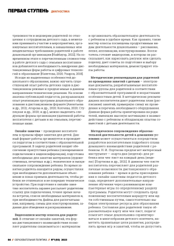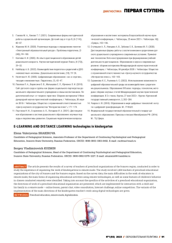 2. Атарова А. Н., Ничипоренко Л. К., Яфизова Р. И. (2020). Дистанционное дошкольное образование через призму подготовки будущих педагогов. Современное дошкольное образование, (6 (102)), 47-57. 10.24411 / 1997-9657-2020-10089. DOI: 10.24411/1997-9657-2020-10089 EDN: DGTSOY