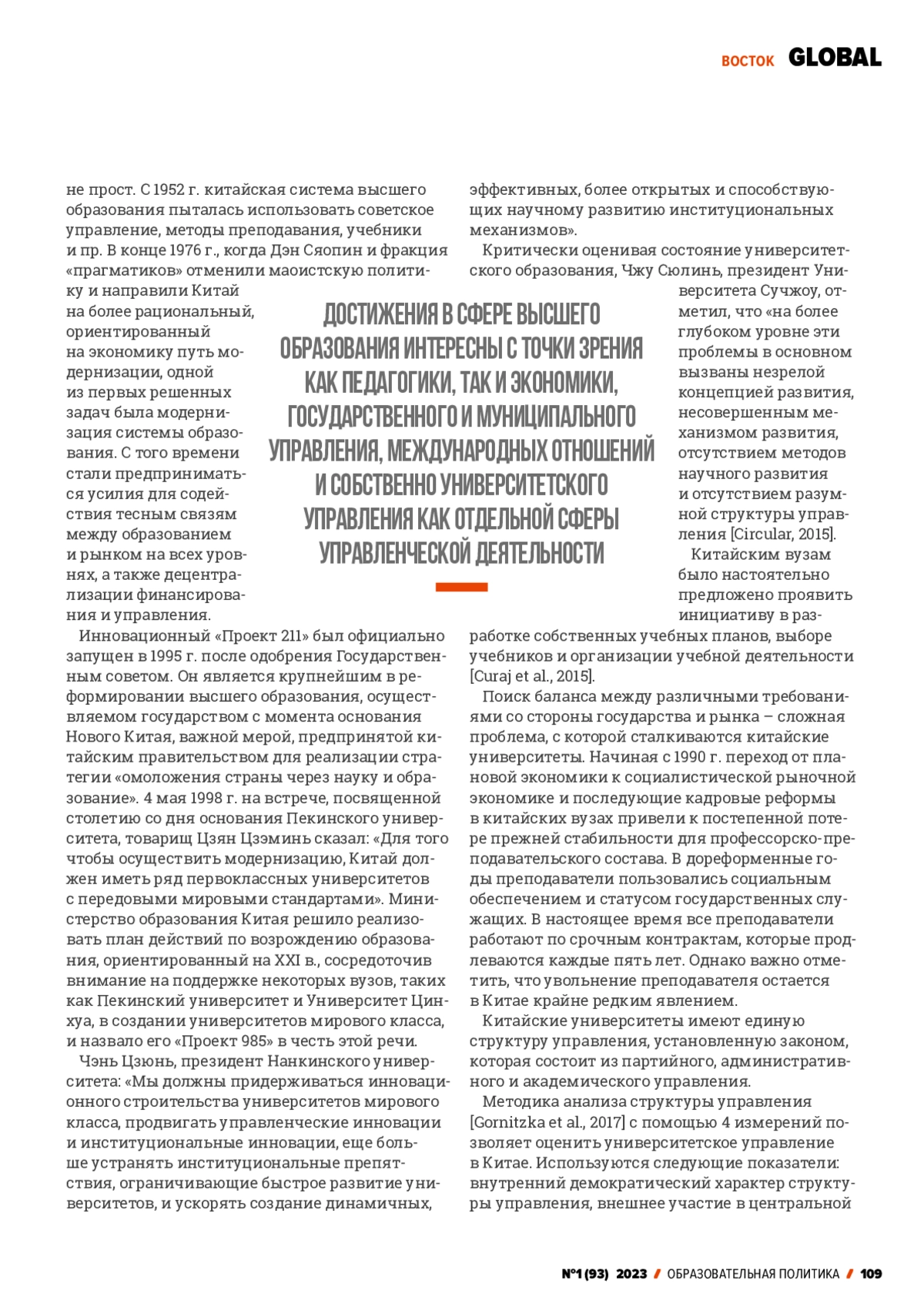 9. Cao Y., Yang R. (2019). World-class university construction and higher education governance reform in China: A policy trajectory. In C. D. Wan, M. N. N. Lee, & H. Y. Loke (Eds.), The governance and management of universities in Asia: Global influences and local responses, 21-42.