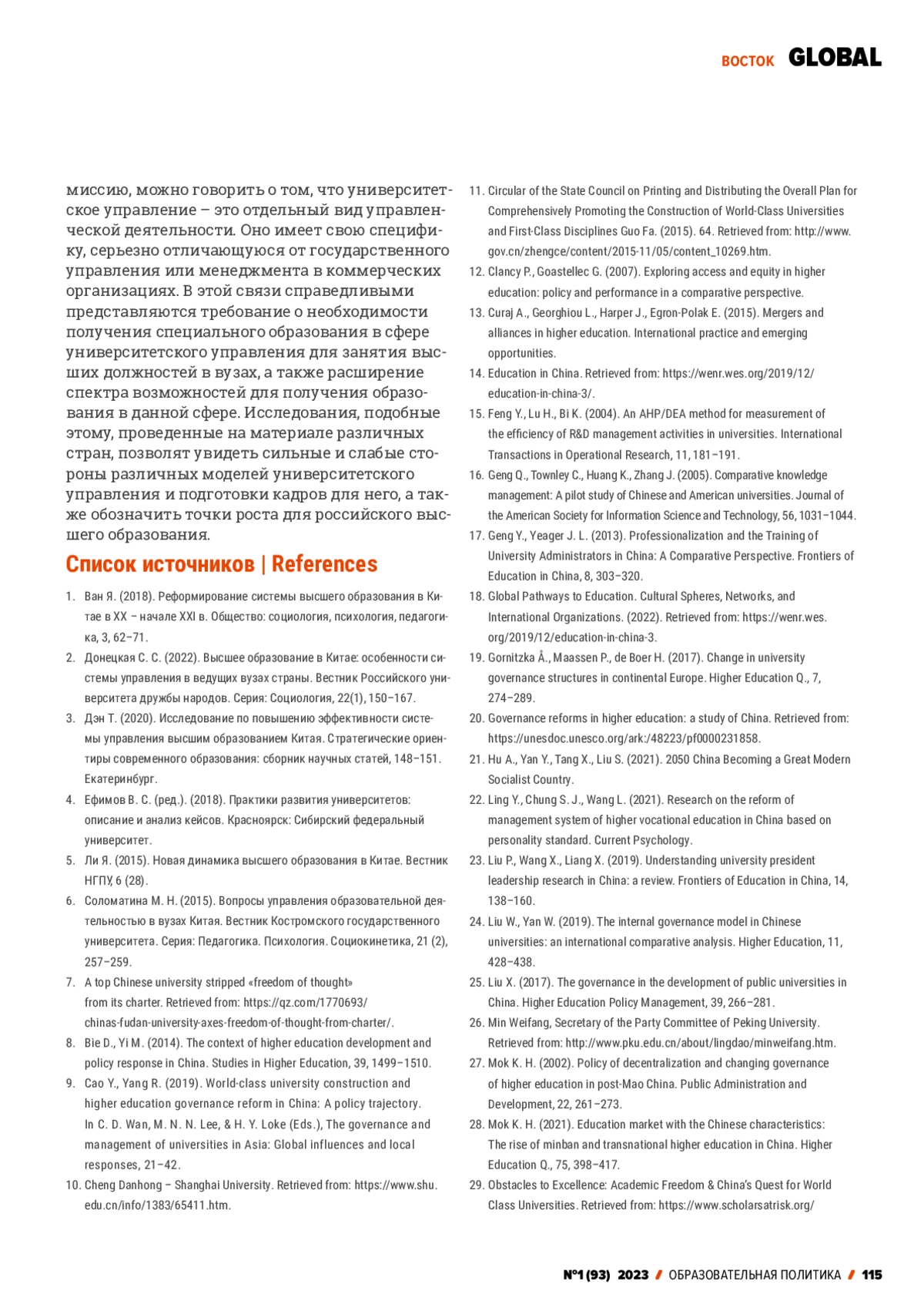 24. Liu W., Yan W. (2019). The internal governance model in Chinese universities: an international comparative analysis. Higher Education, 11, 428-438.