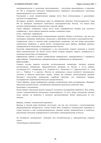 6. Камалов И. Ф. Пределы конкретизации права в вопросе устранения правовой неопределенности (на примере Налогового кодекса Российской Федерации) // Образование и право. 2025. № 1. DOI: 10.24412/2076-1503-2025-1-152-155