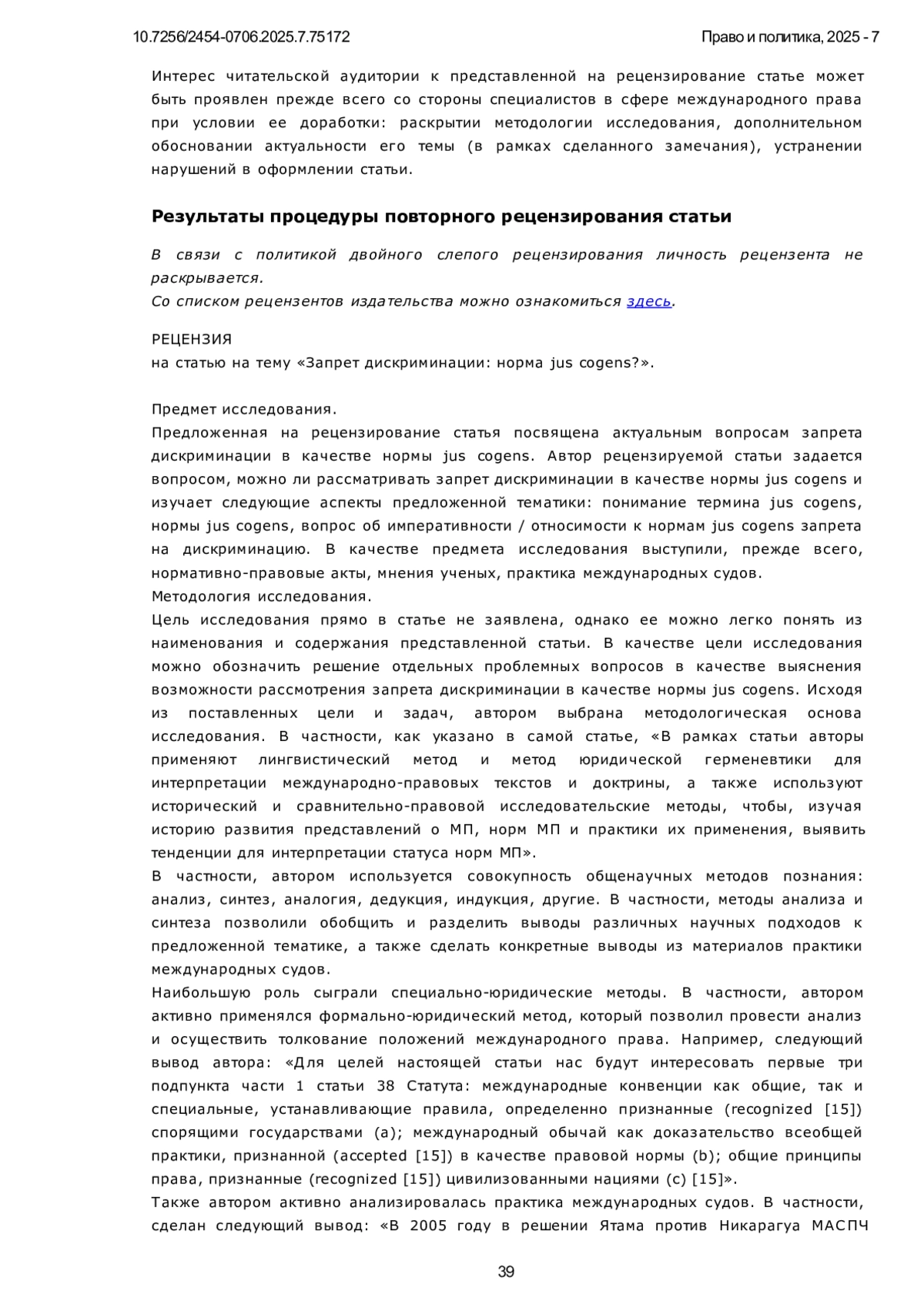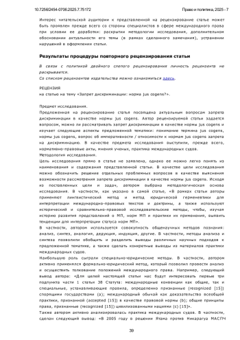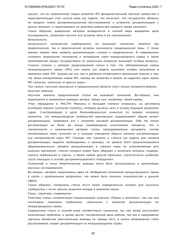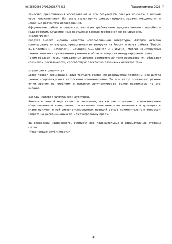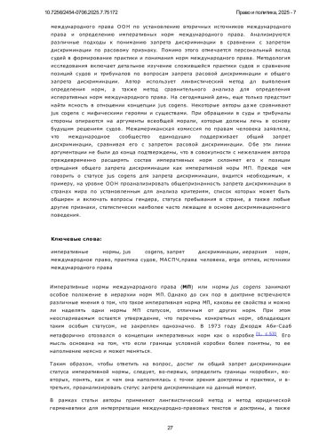 ЯТАЕВА П. С., ЯТАЕВ А. Р. ЗАПРЕТ ДИСКРИМИНАЦИИ: НОРМА JUS COGENS? // ПРАВО И ПОЛИТИКА. 2025. № 7