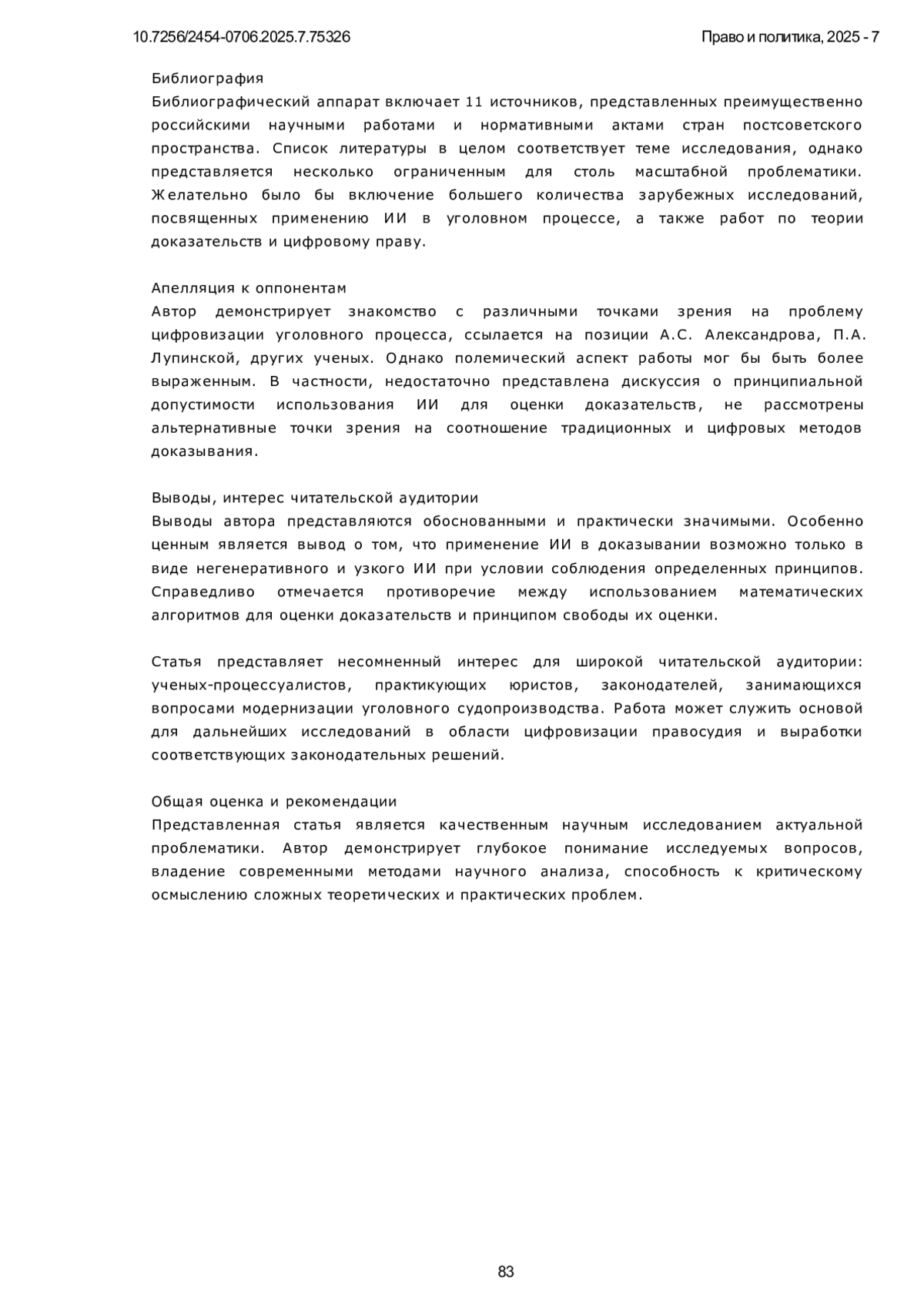 10. Спиридонов, М. С. Технологии искусственного интеллекта в уголовно-процессуальном доказывании / М. С. Спиридонов // Journal of Digital Technologies and Law. - 2023. - Т. 1, № 2. - С. 481-497. DOI: 10.21202/jdtl.2023.20