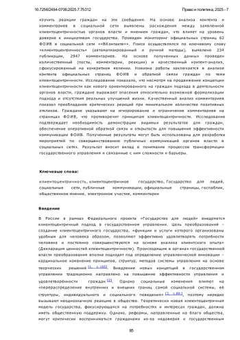 Статья: Клиентоцентричность в государственном управлении: коммуникации органов власти и реакция граждан в социальной сети «ВКонтакте» (2025)