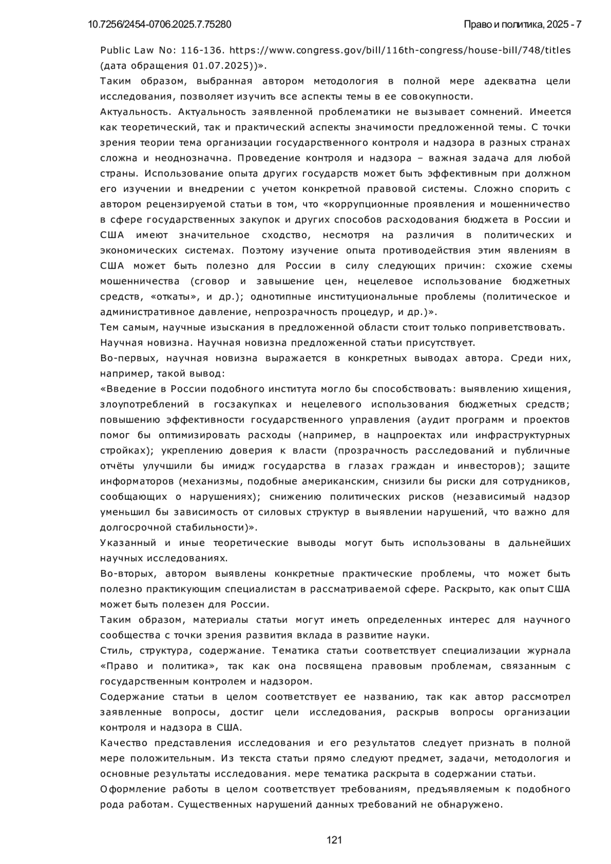 5. Мирошник О. А. Аудит в контрактной системе закупок в Соединенных Штатах Америки. Местное право. 2018. № 2. С. 29-40.