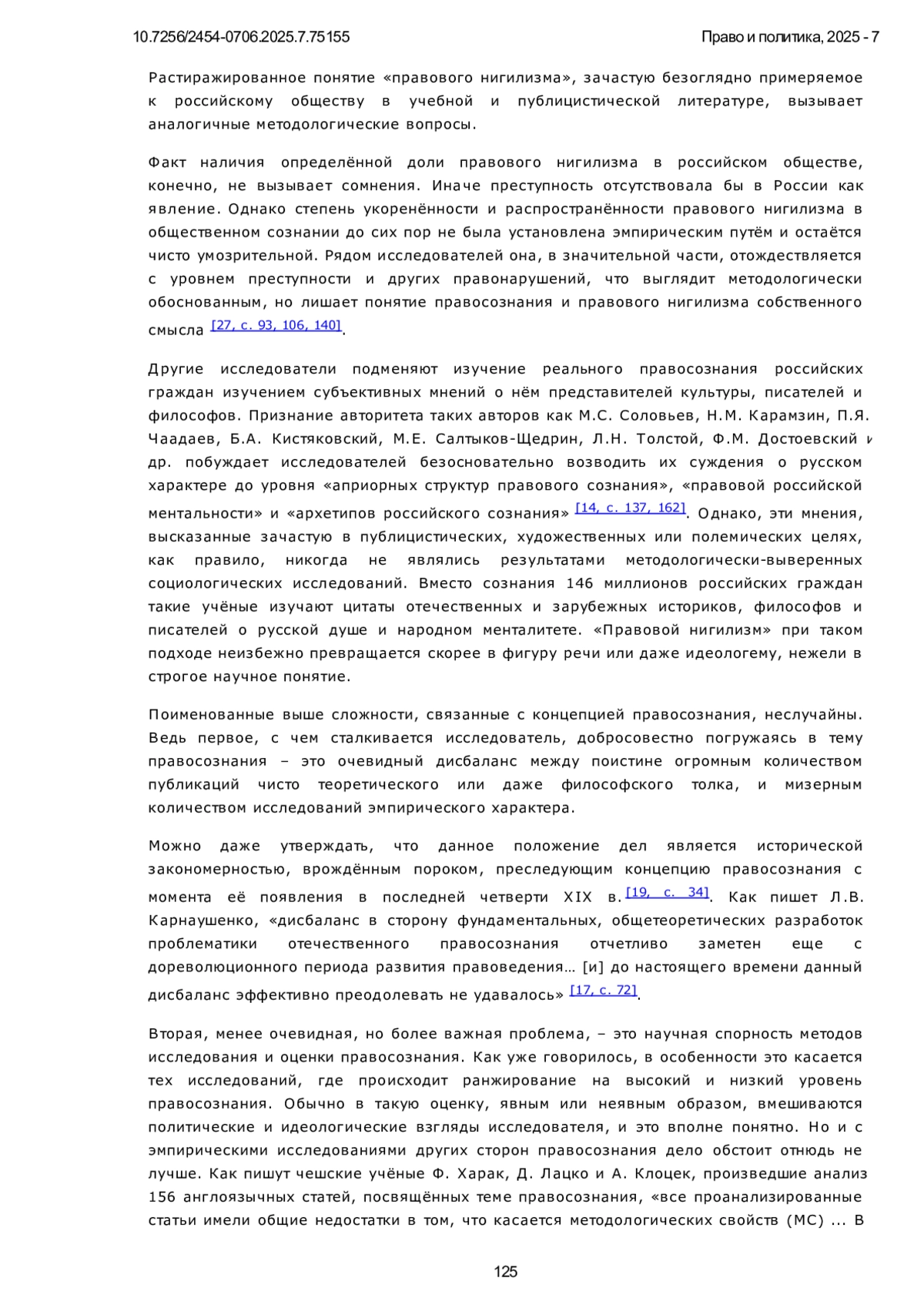 17. Карнаушенко Л. В. Правосознание как объект эмпирического познания // Общество и право. - 2023. - № 2 (84). - С. 70-74.