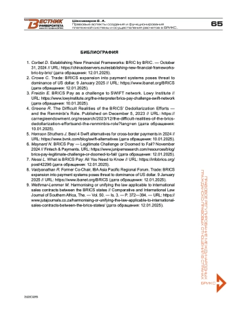 6. Maynard N. BRICS Pay - Legitimate Challenge or Doomed to Fail? November 2024 // Fintech & Payments. URL: https://www.juniperresearch.com/resources/blog/brics-pay-legitimate-challenge-or-doomed-to-fail (дата обращения: 12.01.2025).