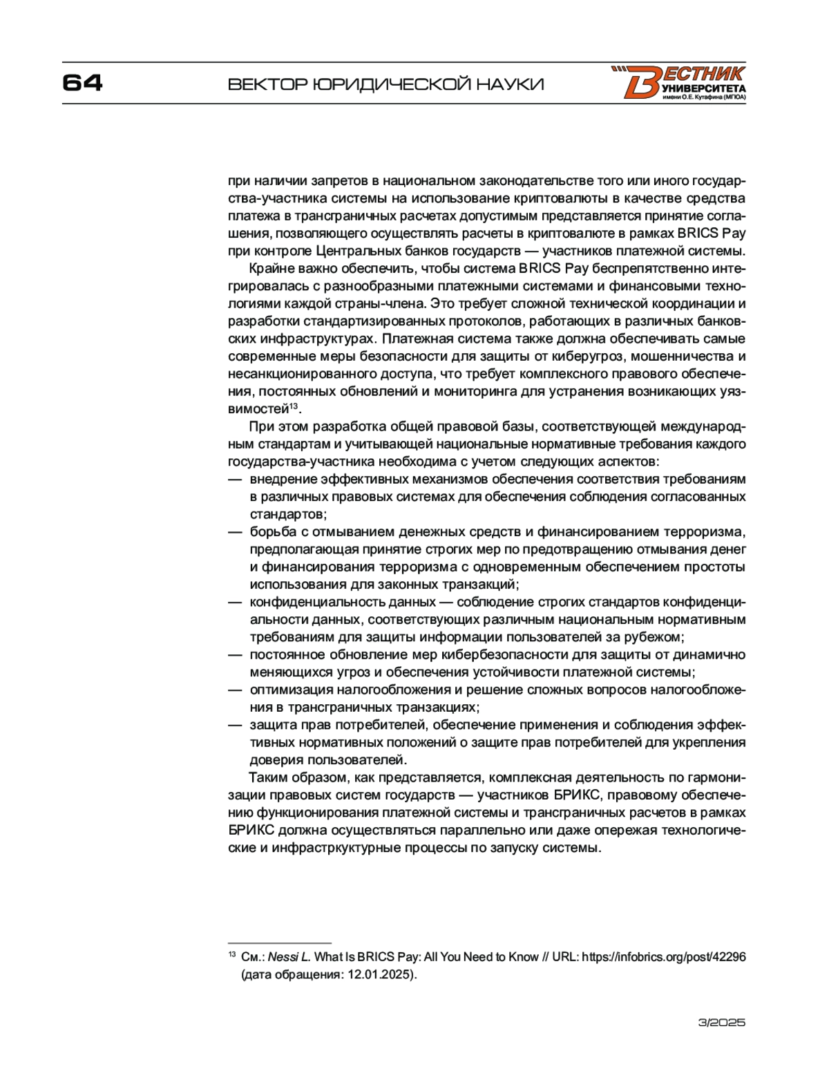 7. Nessi L. What is BRICS Pay: All You Need to Know // URL: https://infobrics.org/post/42296 (дата обращения: 12.01.2025).