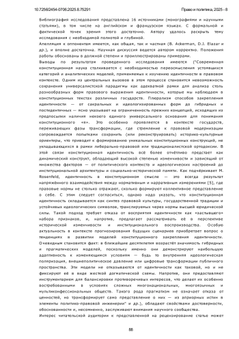2. Дахин А.В. Философские смыслы конституционных понятий: проблема связи цивилизационной и конституционной идентичности гражданина России // Вестник Российского философского общества. 2021. № 3-4 (97-98). С. 43-55. DOI: 10.21146/1606-6251-2021-3/4-43-55