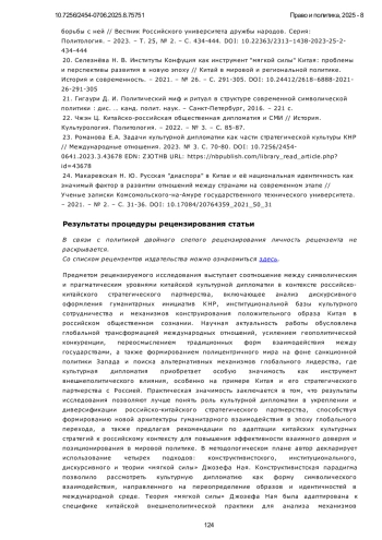 15. Романова Е. А. Исследование культурной дипломатии КНР в работах китайских и западных исследователей // Вестник Московского университета. Серия 27. Глобалистика и геополитика. - 2024. - № 2. - С. 77-88. DOI: 10.56429/2414-4894-2024-48-2-77-88
