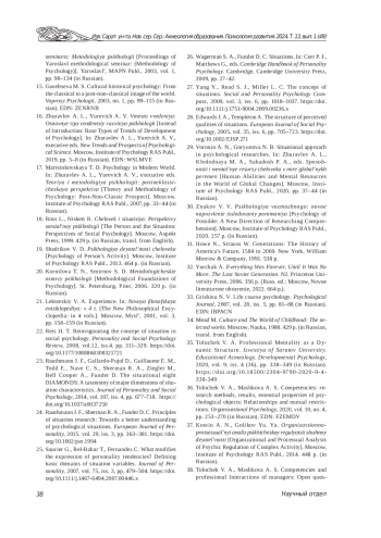 24. Rauthmann J. F., Sherman R. A., Funder D. C. Principles of situation research: Towards a better understanding of psychological situations // European Journal of Personality. 2015. Vol. 29, iss. 3. P. 363-381. DOI: 10.1002/per.1994