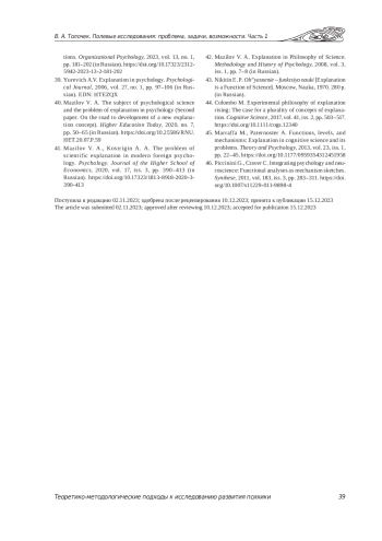 40. Мазилов В. А. Предмет психологической науки и проблема объяснения в психологии. Статья вторая. На пути к разработке новой концепции объяснения // Высшее образование сегодня. 2020. № 7. С. 50-65. DOI: 10.25586/RNU.HET.20.07.P.59 EDN: FLWIOO
