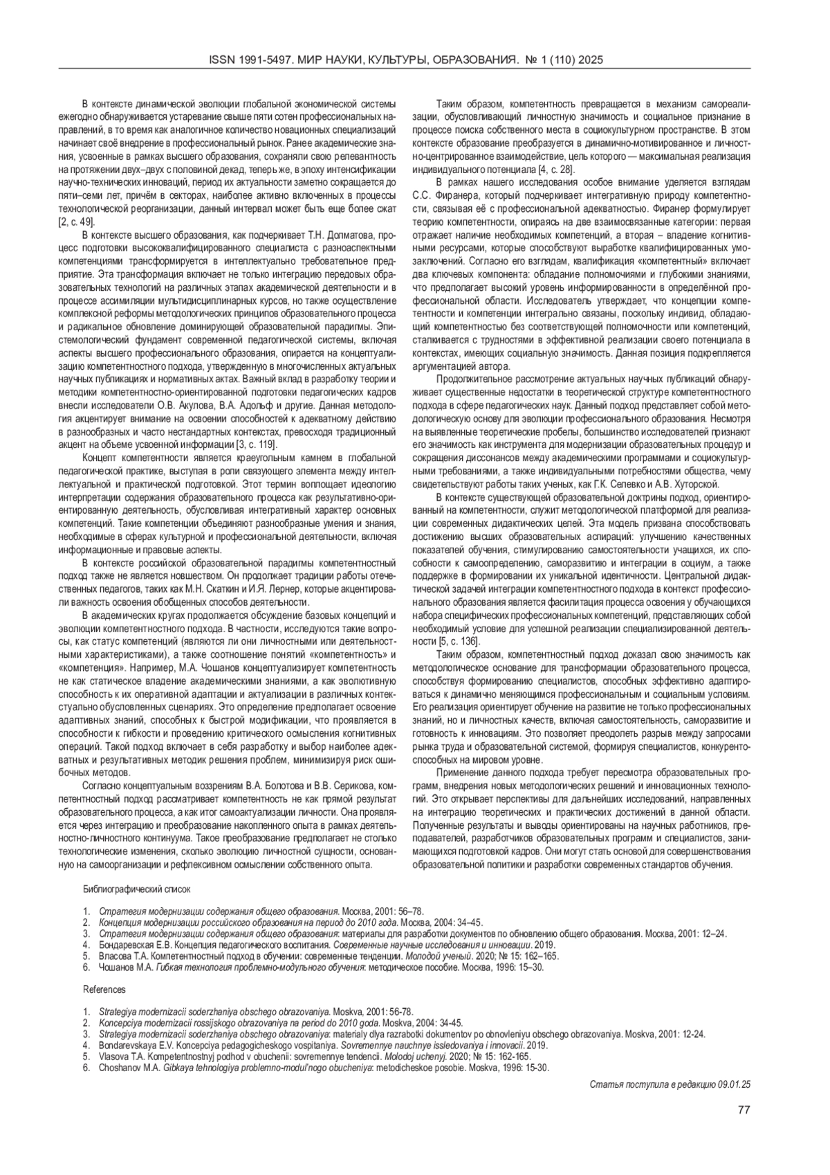 5. Власова Т.А. Компетентностный подход в обучении: современные тенденции. Молодой ученый. 2020; № 15: 162-165.