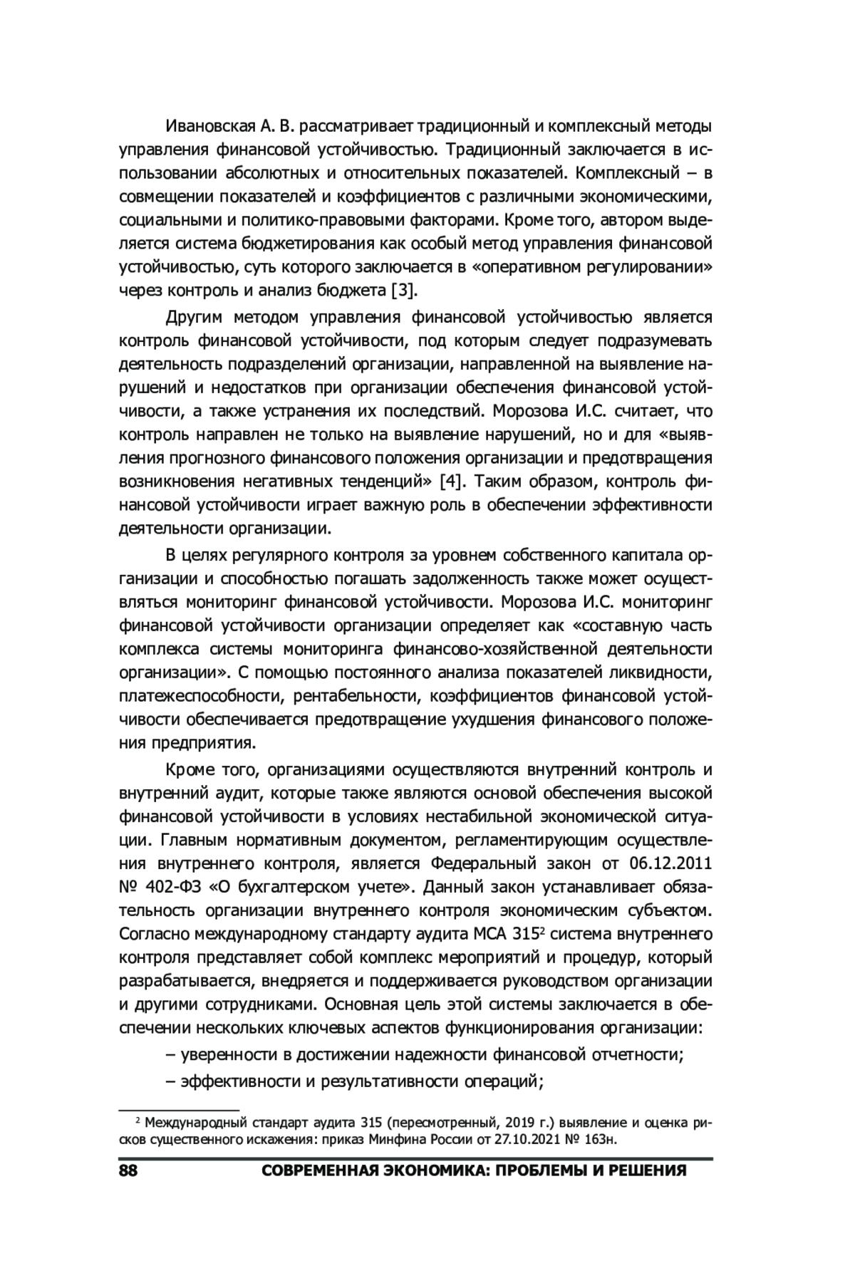3. Ивановская А.В., Наими C. Методы управления финансовой устойчивостью компании для целей повышения эффективности бизнеса // Вектор экономики, 2021, no. 3, с. 57.