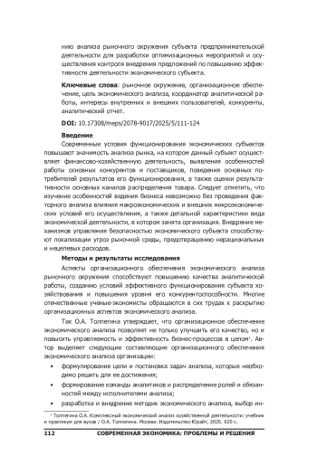 3. Ендовицкий Д.А., Подлесных С.А. Организационные этапы экономического анализа экспертной деятельности в условиях конкурентной среды // Современная экономика: проблемы и решения, 2023, no. 4, c. 58-70. EDN: CTADNI