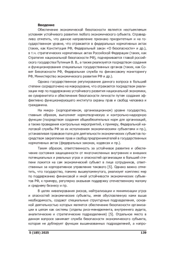 Однако государственное регулирование данного вопроса в большей степени сосредоточено на макроуровне, что отражается посредством реализации мер по поддержанию устойчивого развития национальной экономики, ее суверенитета и обеспечения безопасности личности путем создания эффективно функционирующего института охраны прав и свобод человека и гражданина. На микро- (корпоративном, организационном) уровне государство, главным образом, выполняет нормотворческую и контрольно-надзорную функции (посредством создания общеобязательных норм для организаций, а также проведения контрольных мероприятий, к примеру, Федеральной налоговой службы РФ за их исполнением экономическими субъектами и пр.), устанавливая правовое поле для деятельности экономических субъектов посредством закрепления прав и свобод предпринимателей в государственных нормативных актах (федеральных законах, кодексах и пр.).
