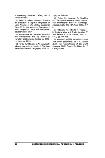 13. Forslid R., Ottaviano G. An analytically solvable core-periphery model // Ottaviano Journal of Economic Geography, 2003, no. 3 (3), pp. 229-240.