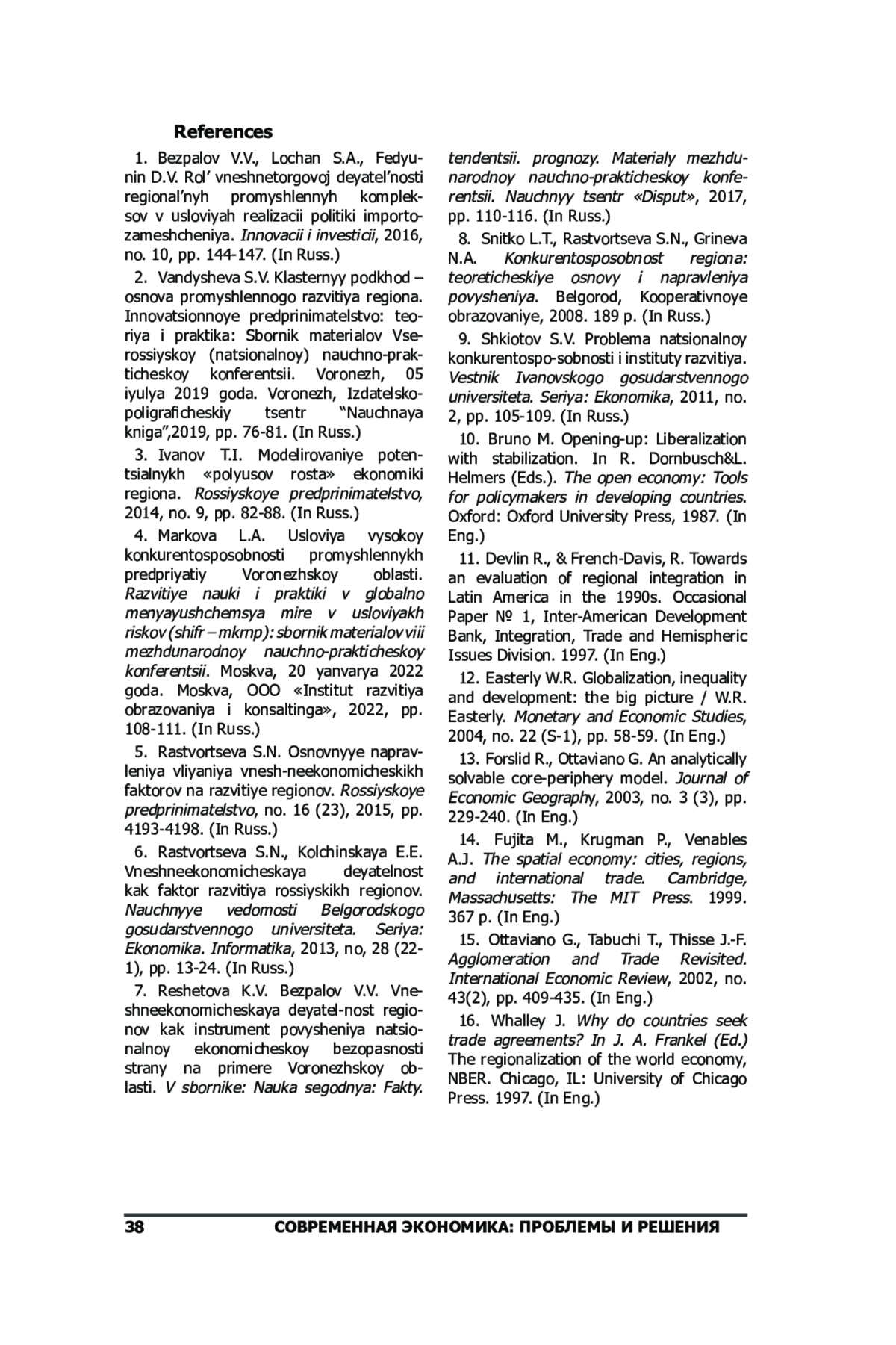 15. Ottaviano G., Tabuchi T., Thisse J.-F. Agglomeration and Trade Revisited // International Economic Review, 2002, no. 43(2), pp. 409-435. EDN: DZVSJV