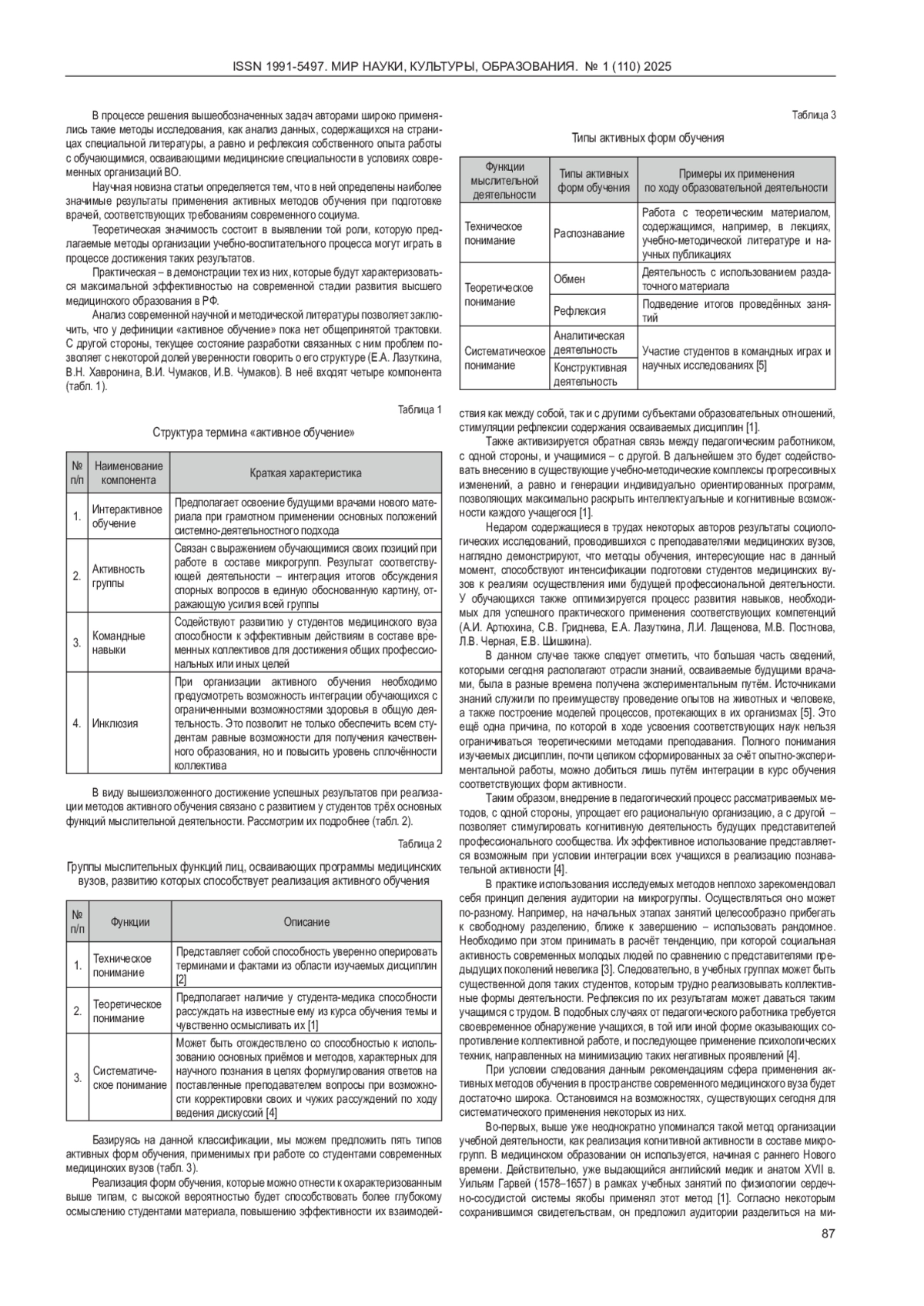 4. Лащенова Л.И., Постнова М.В. Применение активных форм и методов обучения на занятиях по биологии в медицинском вузе. Медицинское образование и профессиональное развитие. 2023; Т. 14, № 4 (52): 51-62. EDN: BIXFYG
