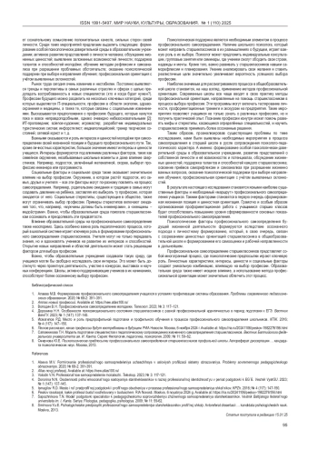 3. Володин В.Н. Профессиональное самоопределение молодежи. Телескоп. 2023; № 3: 117-121. 4. Доронина Н.Н. Особенности психоэмоционального состояния старшеклассников с разной профессиональной идентичностью в период подготовки к ЕГЭ. Вестник ВятГУ. 2023; № 1 (147): 137-145.