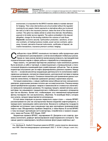 Статья: Формат БРИКС: на пути создания юридической инфраструктуры услуг нефтетрейдинга и энергетического партнерства (2025)