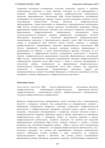Статья: Профессиональное мировоззрение курсантов образовательных организаций Министерства внутренних дел Российской Федерации: концепция, сущность и структура (2025)