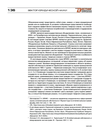 Статья: Некоторые аспекты охраны товарных знаков в странах БРИКС (2025)
