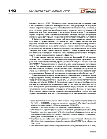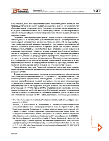 Ключевые фразы: международное частное право, охрана товарных знаков, БРИКС, НАЦИОНАЛЬНОЕ ЗАКОНОДАТЕЛЬСТВО, международные соглашения