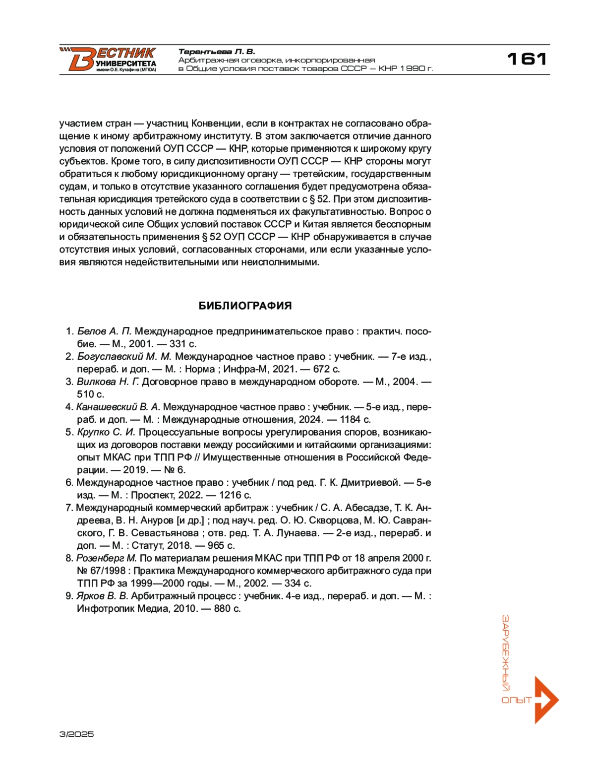 5. Крупко С. И. Процессуальные вопросы урегулирования споров, возникающих из договоров поставки между российскими и китайскими организациями: опыт МКАС при ТПП РФ // Имущественные отношения в Российской Федерации. - 2019. - № 6.
