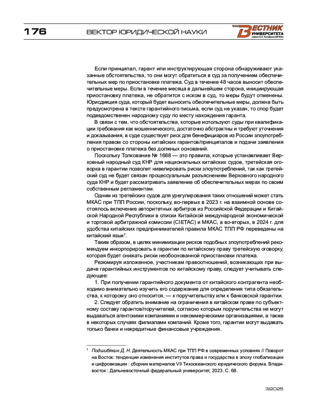 1. Подшибякин Д. Н. Деятельность МКАС при ТПП РФ в современных условиях // Поворот на Восток: тенденции изменения институтов права и государства в эпоху глобализации и цифровизации : сборник материалов VII Тихоокеанского юридического форума. - Владивосток : Дальневосточный федеральный университет, 2023. - С. 67-74.