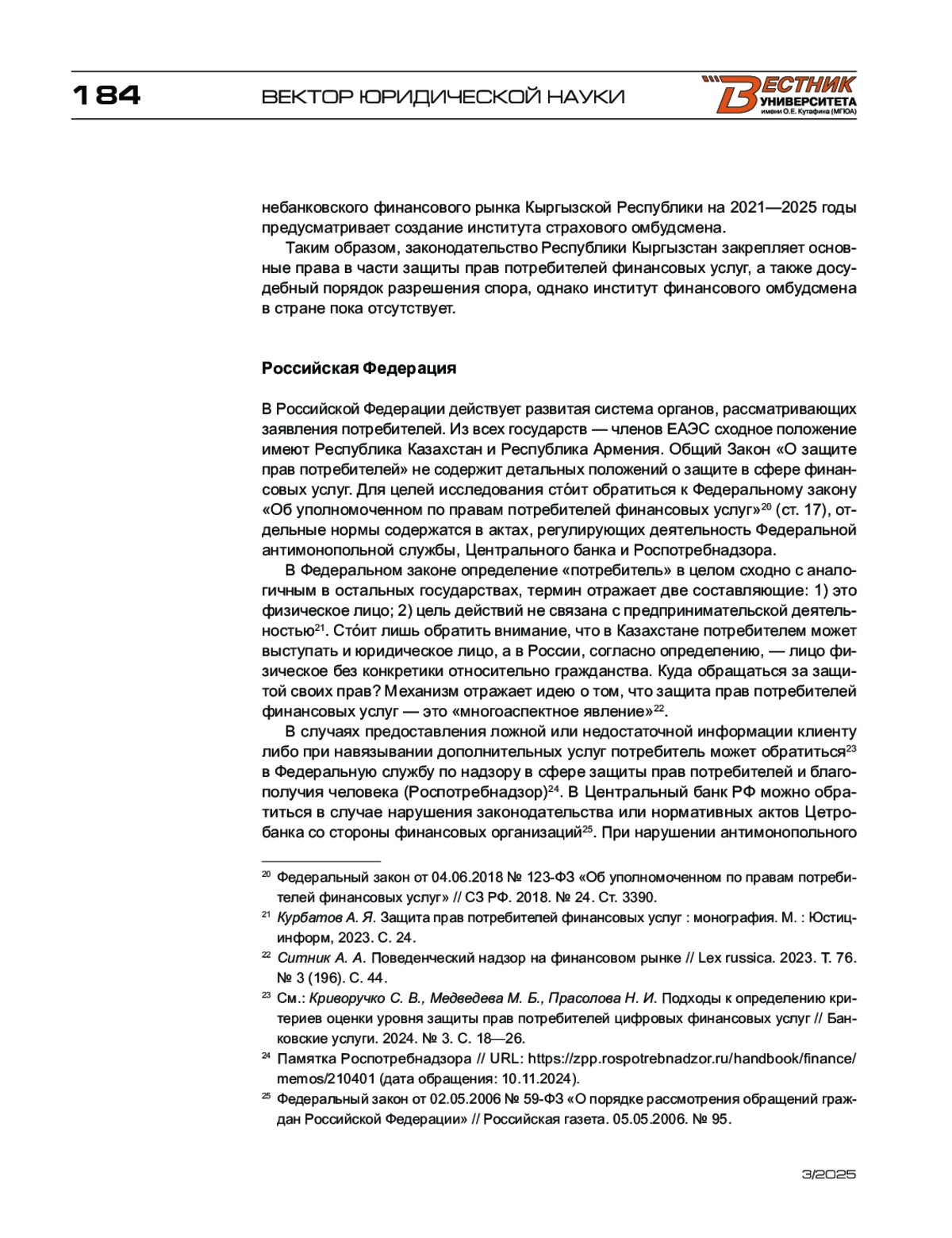 2. Курбатов А. Я. Защита прав потребителей финансовых услуг : монография. - М. : Юстицинформ, 2023. - 168 с.
