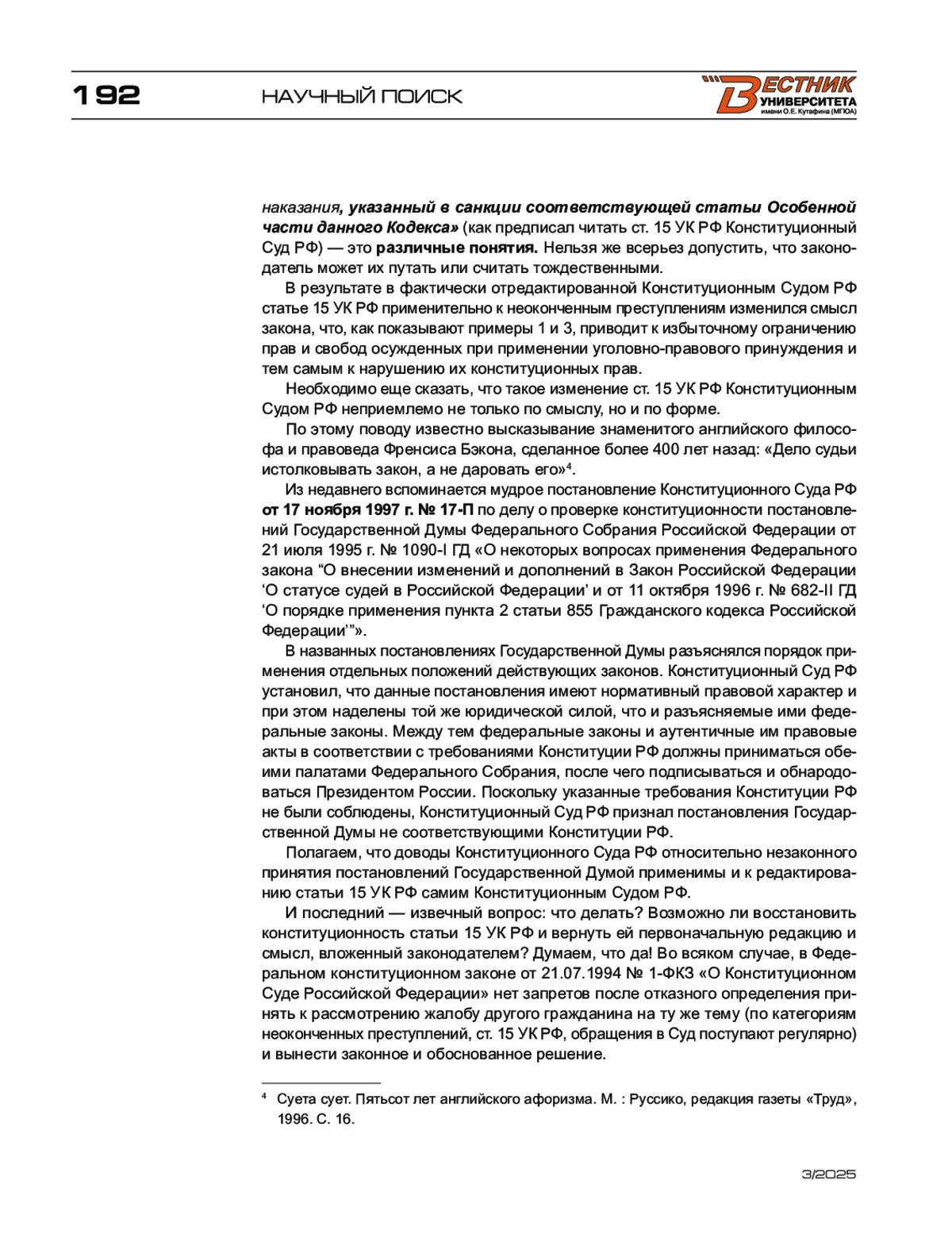 Для цитирования: Шпаковский Ю. Г. Сокровищница народной мудрости. Вестник Университета имени О. Е. Кутафина (МГЮА). 2025;1(3):259-262.