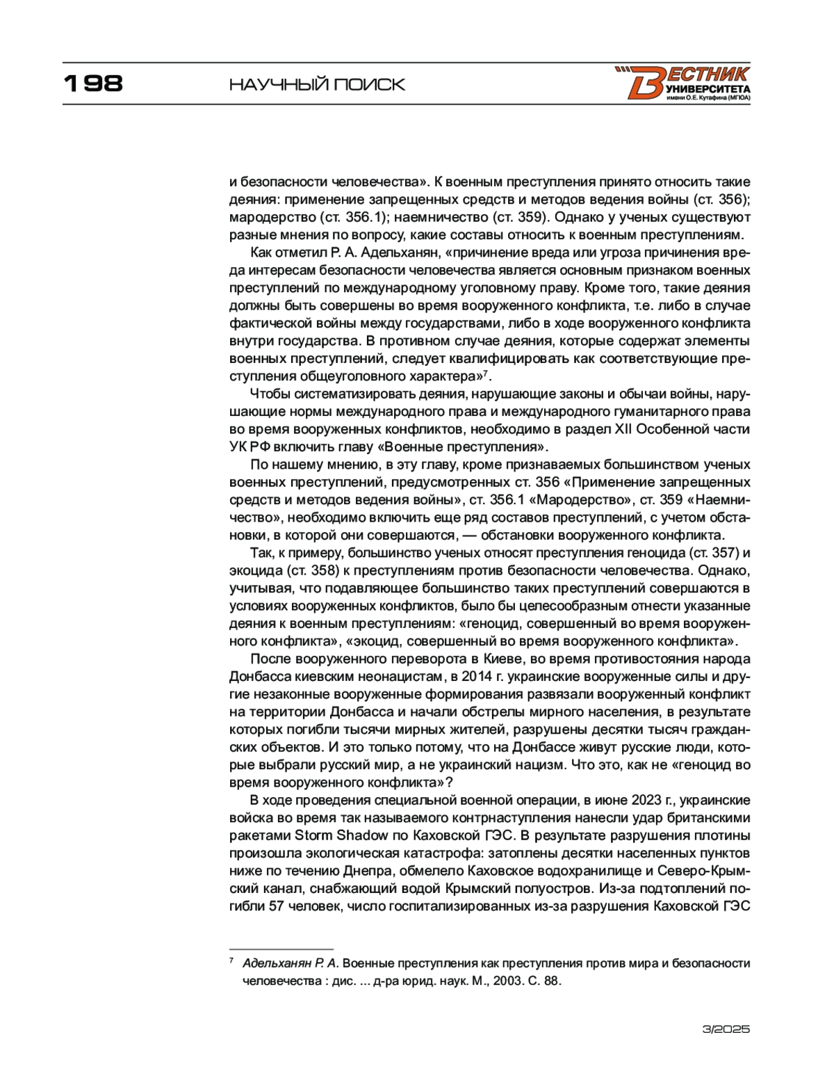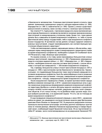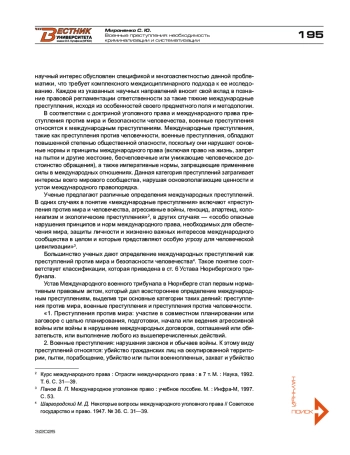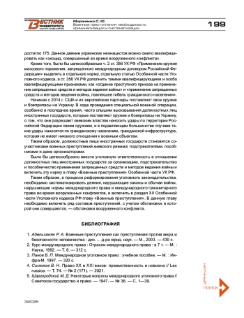 1. Адельханян Р. А. Военные преступления как преступления против мира и безопасности человечества : дис. ... д-ра юрид. наук. - М., 2003. - 430 c.