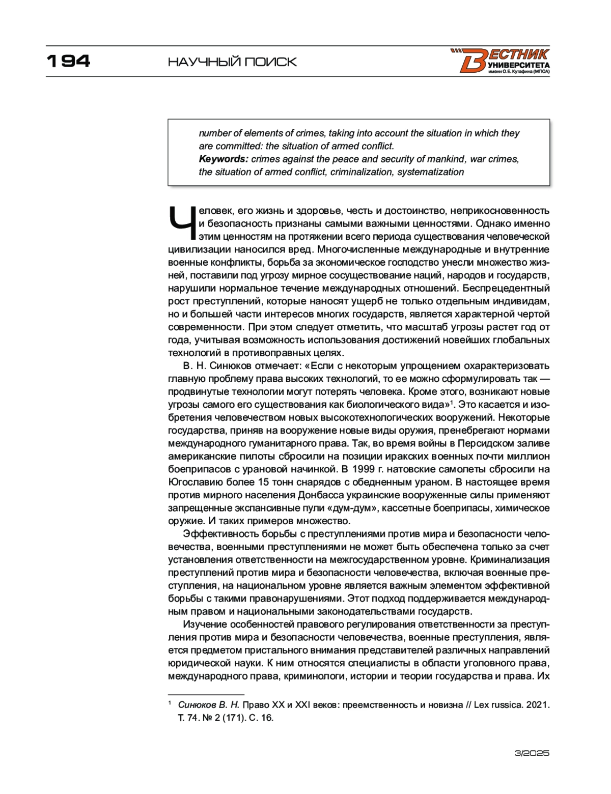 4. Синюков В. Н. Право XX и XXI веков: преемственность и новизна // Lex russica. - Т. 74. - № 2 (171). - 2021.