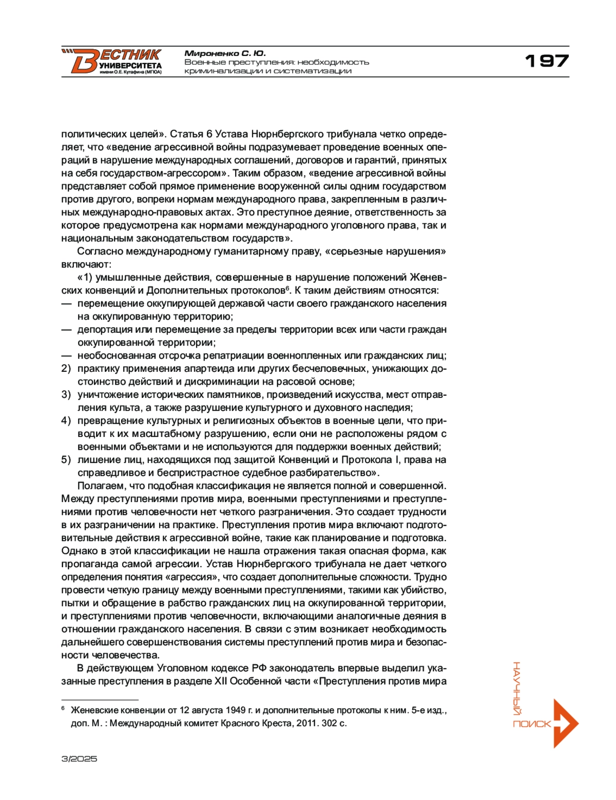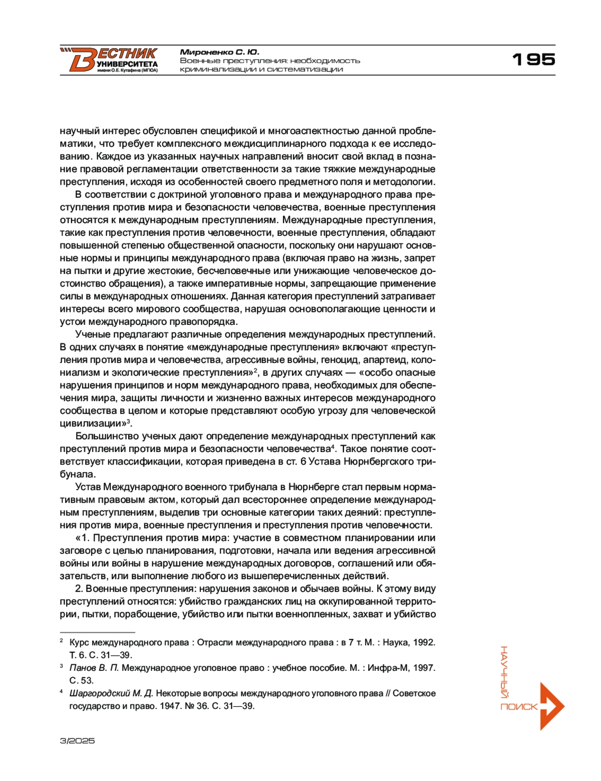 5. Шаргородский М. Д. Некоторые вопросы международного уголовного права // Советское государство и право. - 1947. - № 36. - С. 1-39.