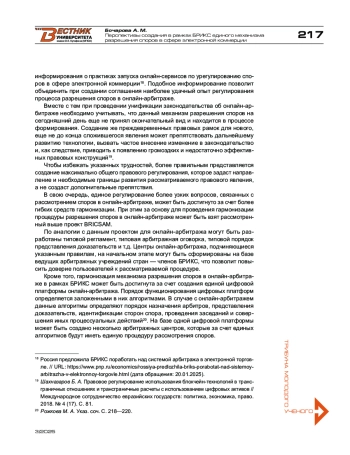 10. Рожкова М. А. Об автоматизации онлайн-арбитража и онлайн-урегулирования коммерческих и потребительских споров // E-commerce и взаимосвязанные области (правовое регулирование) : сборник статей / рук. авт. кол. и отв. ред. М. А. Рожкова. - М. : Статут. - 2019. - 234 с.