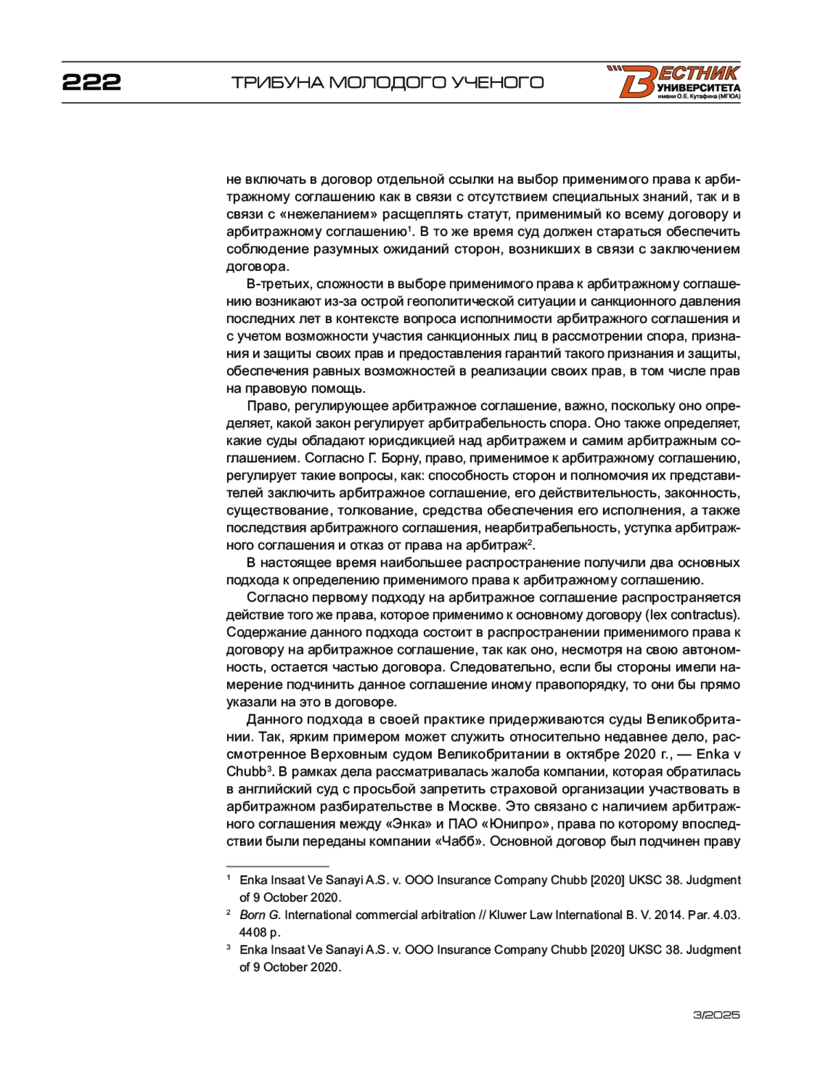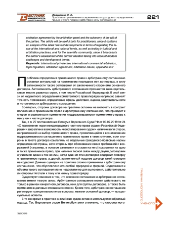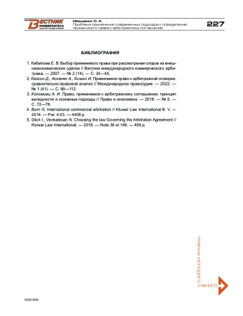 2. Кайсин Д., Асланян А., Кизько И. Применимое право к арбитражной оговорке: сравнительно-правовой анализ // Международное правосудие. - 2022. - № 1 (41). - С. 99-112.