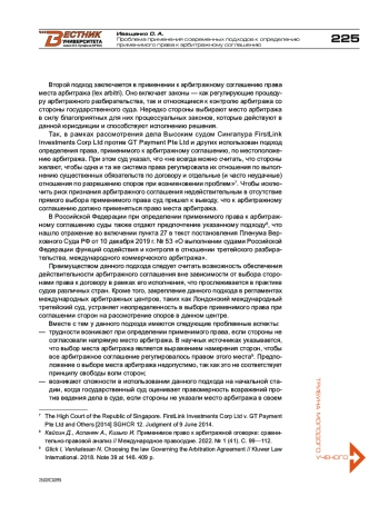 5. Glick I., Venkatesan N. Choosing the law Governing the Arbitration Agreement // Kluwer Law International. - 2018. - Note 39 at 146. - 409 p.