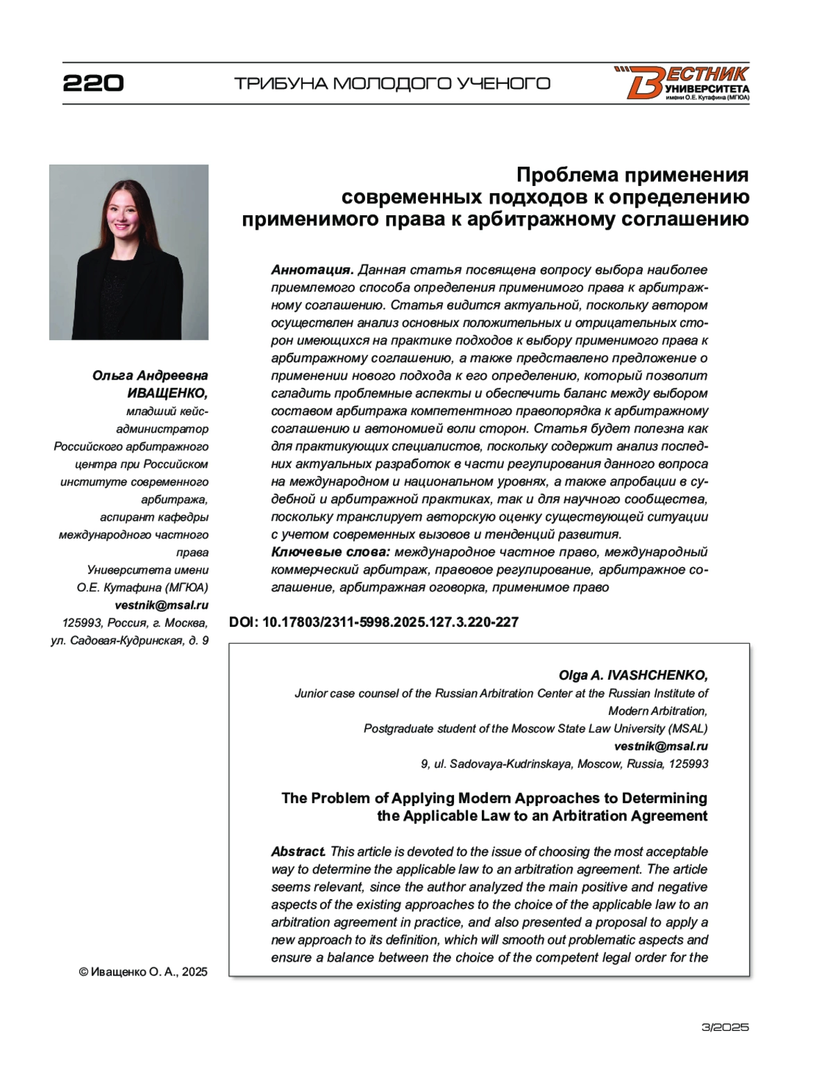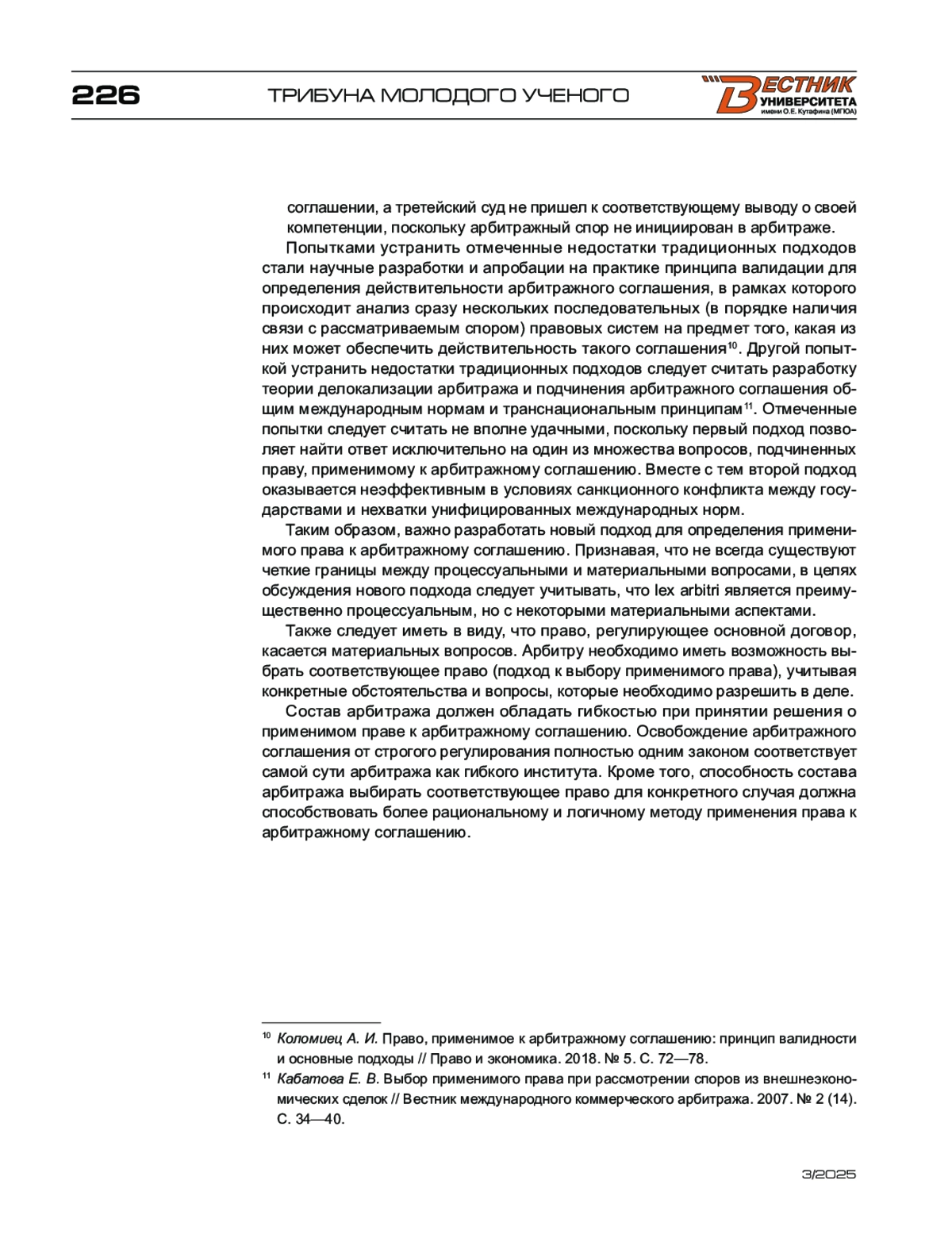 3. Коломиец А. И. Право, применимое к арбитражному соглашению: принцип валидности и основные подходы // Право и экономика. - 2018. - № 5. - С. 72-78.