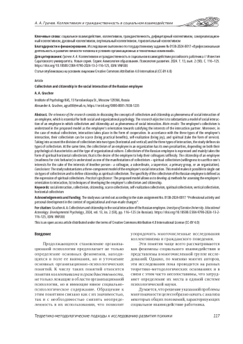 Актуальность исследования состоит в обсуждении понятий коллективизма и гражданственности как феноменов социального взаимодействия работника, что имеет существенное значение как для социальной, так и для организационной психологии.