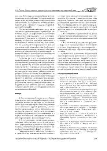 Продолжающееся становление организационной психологии предполагает не только определение основных феноменов, находящихся в поле ее внимания, но и уточнение основных организационно-психологических понятий. К числу таких понятий относятся понятия коллективизма и гражданственности, не только лежащие в области организационной психологии, но и имеющие явное социальнопсихологическое содержание. Обращение к этим понятиям связано как с их значимостью, так и с необходимостью снизить неопределенность в их использовании, что позволит упорядочить многочисленные исследования коллективизма и гражданского поведения.