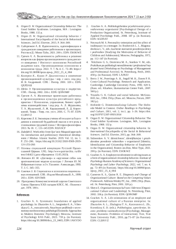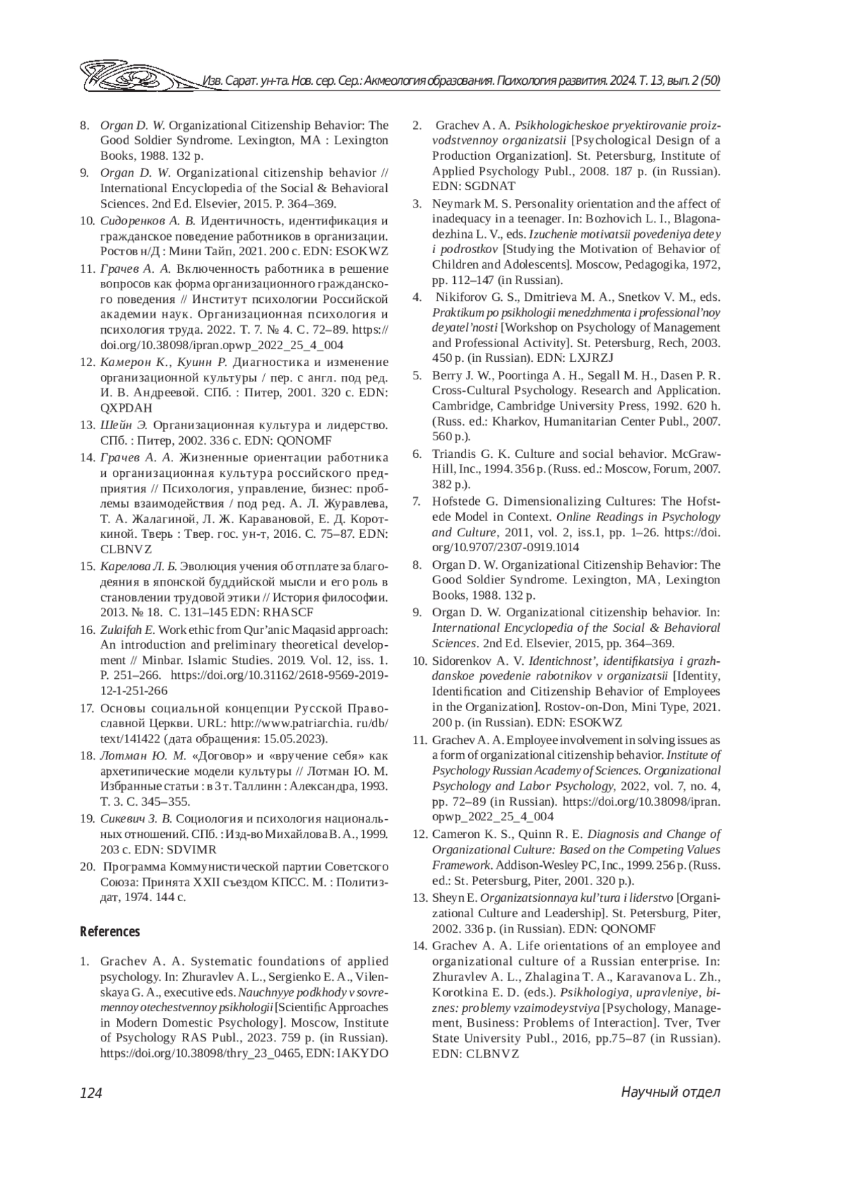 11. Грачев А. А. Включенность работника в решение вопросов как форма организационного гражданского поведения // Институт психологии Российской академии наук. Организационная психология и психология труда. 2022. Т. 7. № 4. C. 72-89. DOI: 10.38098/ipran.opwp_2022_25_4_004 EDN: RPYCNF