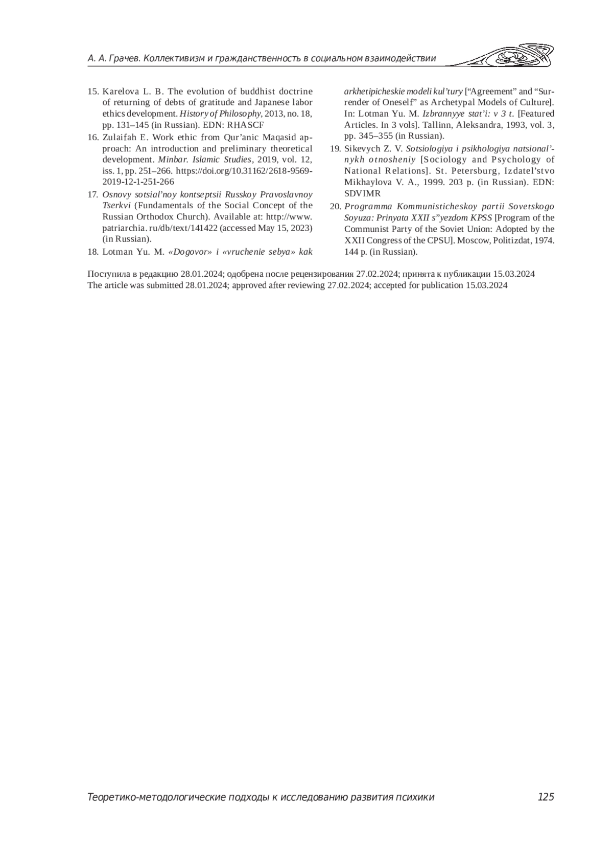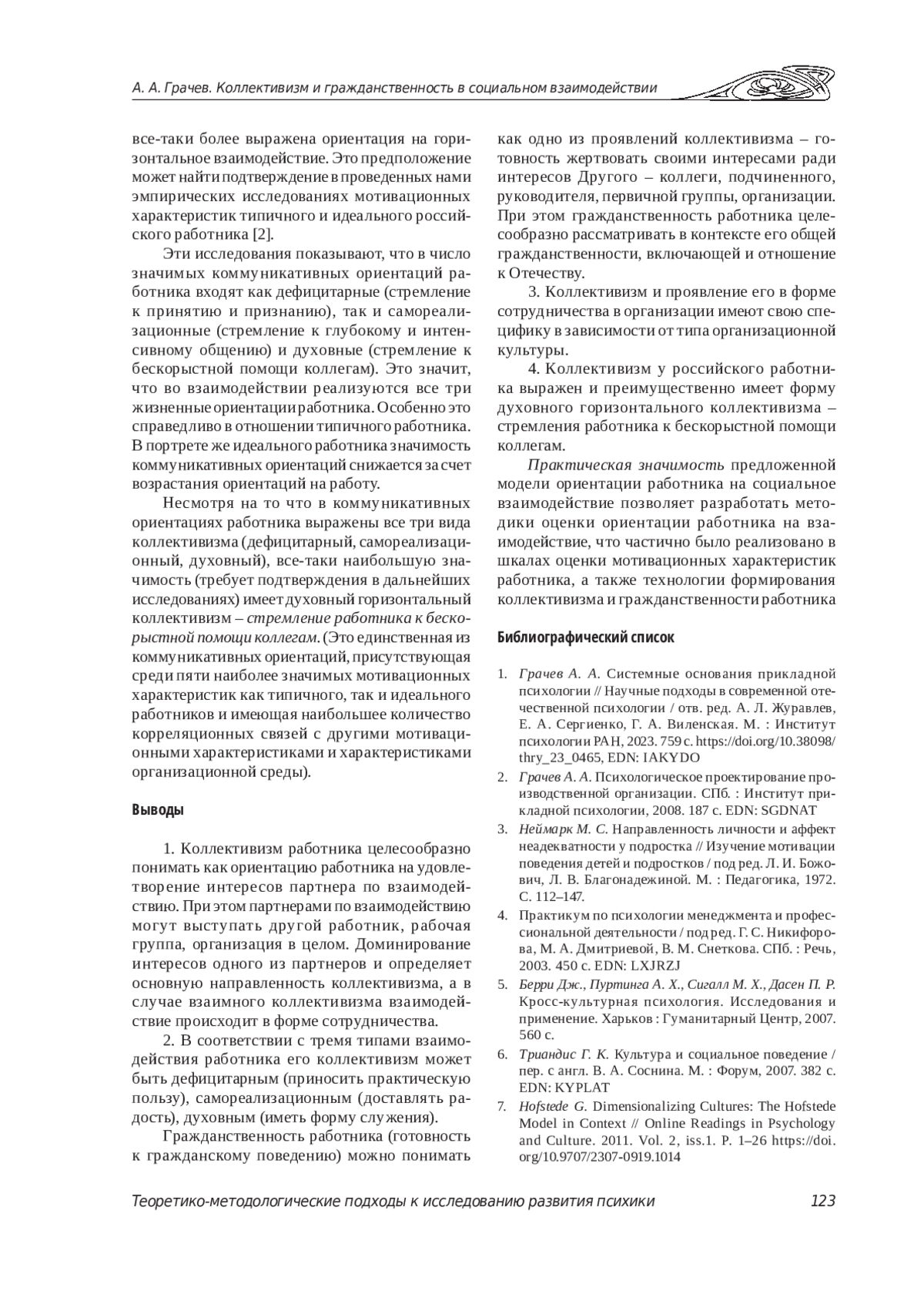 1. Грачев А. А. Системные основания прикладной психологии // Научные подходы в современной отечественной психологии / отв. ред. А. Л. Журавлев, Е. А. Сергиенко, Г. А. Виленская. М.: Институт психологии РАН, 2023. 759 с. ,. DOI: 10.38098/thry_23_0465 EDN: IAKYDO