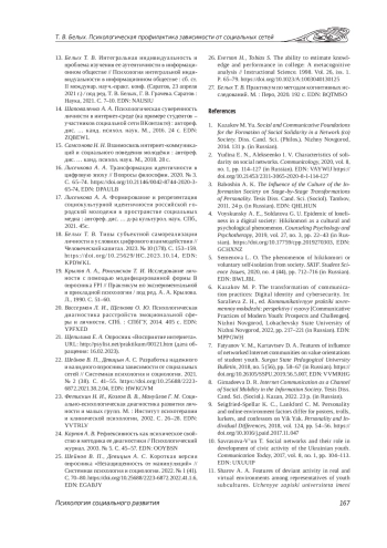 22. Шейнов В. П., Девицын А. С. Разработка надежного и валидного опросника зависимости от социальных сетей // Системная психология и социология. 2021. № 2 (38). С. 41-55. ,. DOI: 10.25688/2223-6872.2021.38.2.04 EDN: HWKGVM