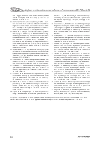 17. Лисенкова А. А. Формирование и репрезентация социокультурной идентичности российской городской молодежи в пространстве социальных медиа: автореф. дис. … д-ра культурол. наук. СПб., 2021. 45с. EDN: QQZVWL