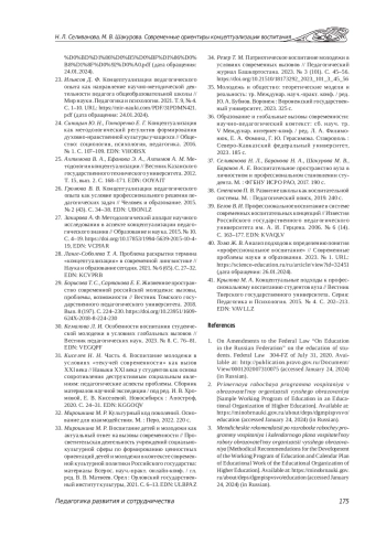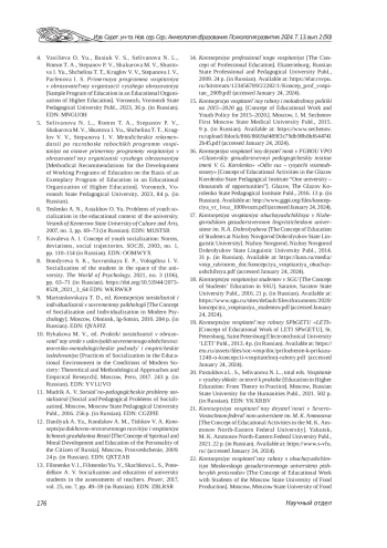 4. Васильева О. Ю., Басюк В. С., Селиванова Н. Л., Ромм Т. А., Степанов П. В., Шакурова М. В., Шустова И. Ю., Щелина Т. Т., Круглов В. В., Степанова И. В., Парфенова И. С. Примерная программа воспитания в образовательной организации высшего образования. Воронеж: Воронежский государственный педагогический университет, 2023. 36 с. EDN: MNGUOH